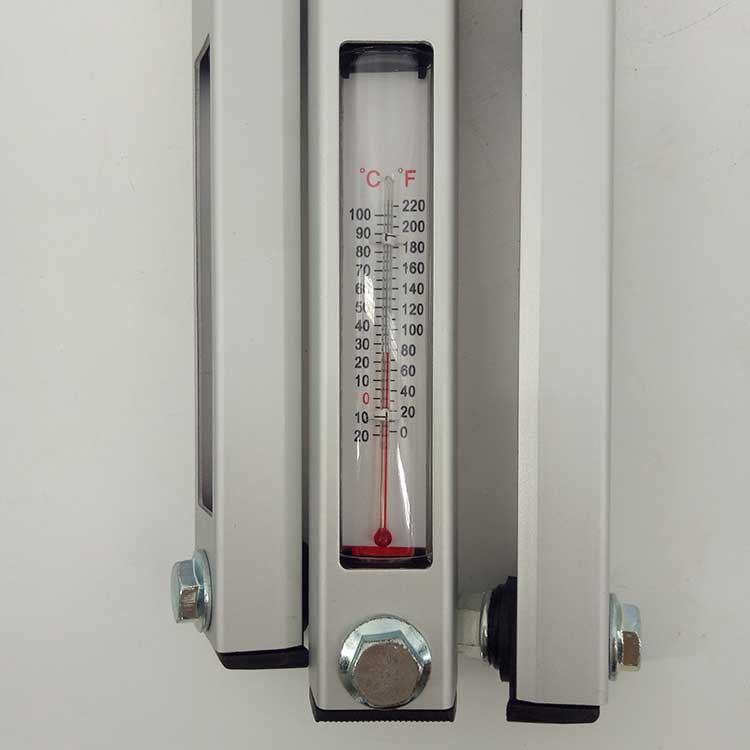 結(jié)構(gòu):鋁合金殼體 + 透明視窗 + 內(nèi)置浮子 + 溫度計(jì) + 密封膠圈