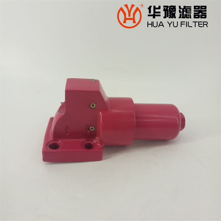 該過濾器的濾芯采用化纖過濾材質,具有過濾精度高,通油能力大,初始壓力損失小,納污量大等優點,并裝有壓差發訊器及旁通閥。當濾芯堵塞到進出油口壓差為0.35MPa時,便發出開關信號,此時應更換濾芯。如果不能馬上停機或無人來更換濾芯,裝在濾芯上部的旁通閥會自動開啟,以保護系統。